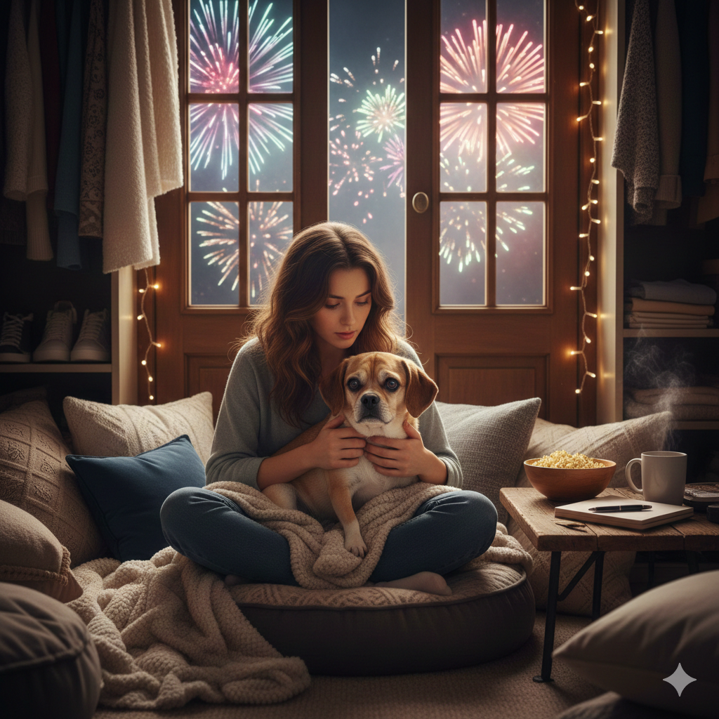 Two weeks ago, while I sat on a cushion on the floor in our closet surrounded by pillows and blankets, with a trembling and inconsolable Puggle on my lap, folks in the surrounding neighborhoods were setting off fireworks to usher in a new year. With each explosion of light followed by the cracking, powerful bang we heard as much as felt, I imagined the fallout.