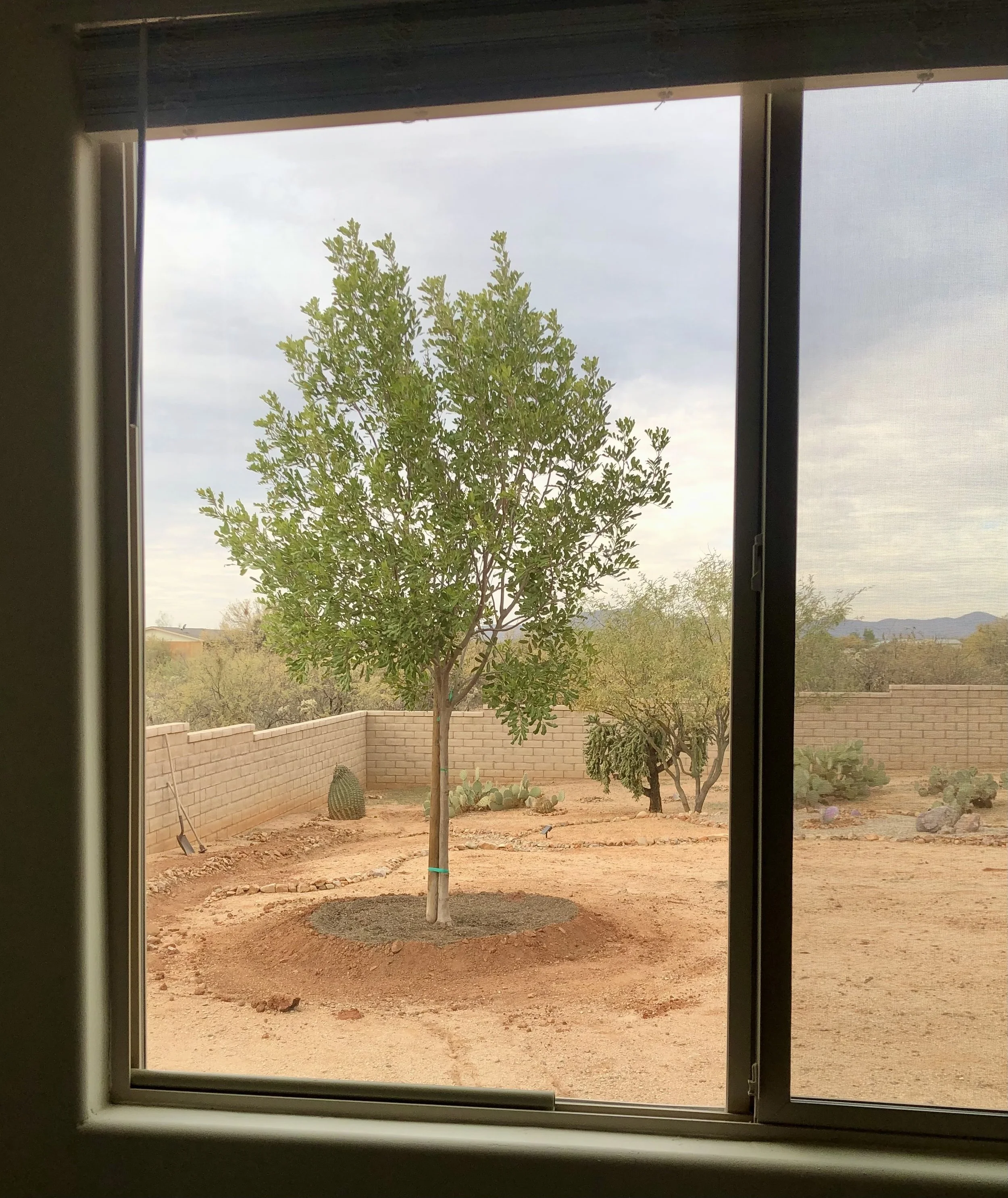 Now I have a carrotwood tree, freshly planted in our new backyard in which to grow the next thirty years of my life. She is a beautiful representation of what will become a stately presence. At fifteen feet high, her canopy is already over eight feet wide. She stands watch, the centerpiece of our landscaping, ready to provide shade and shelter and comfort. She is right outside my bedroom window. The first thing I see in the morning and the last thing I see at night.