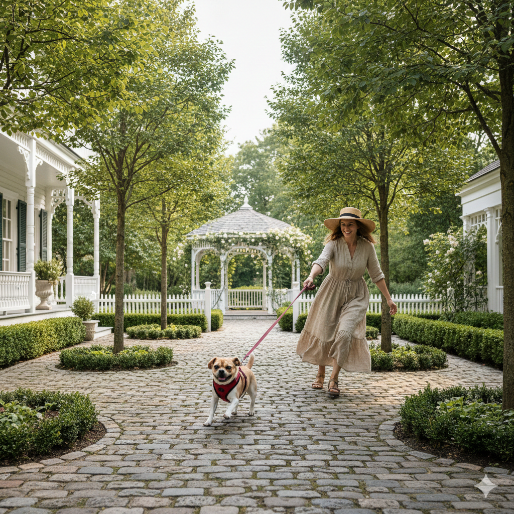 Winnie continued with her quest to find the clearest place on the landscaping in which to leave her own urine signature. Patiently, I waited. Having had no specific plan when we started the walk, we followed Winnie’s instincts. It is what we do best.
