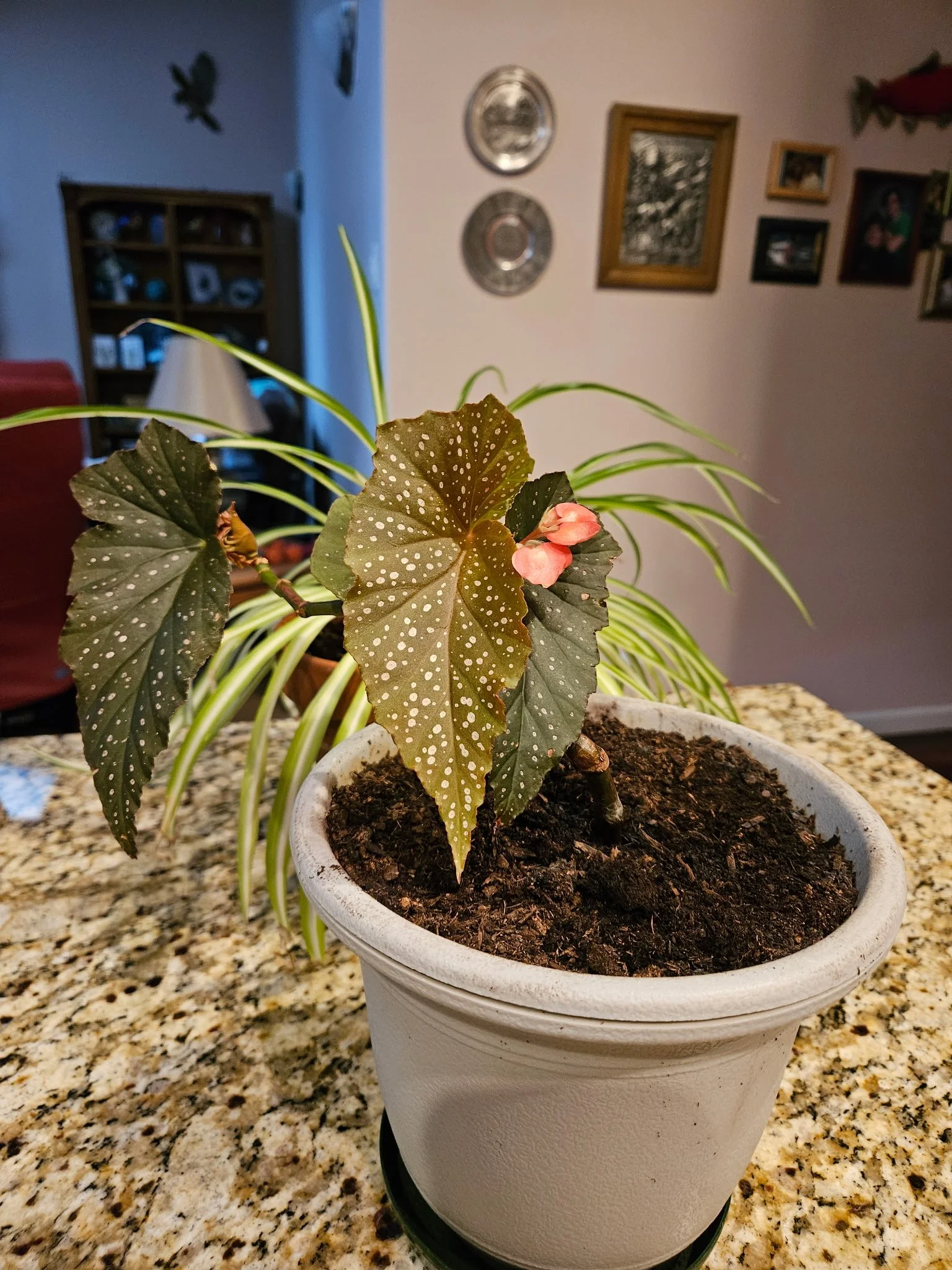 Small now but from a mighty mother plant, this angel wing begonia has a promising future.